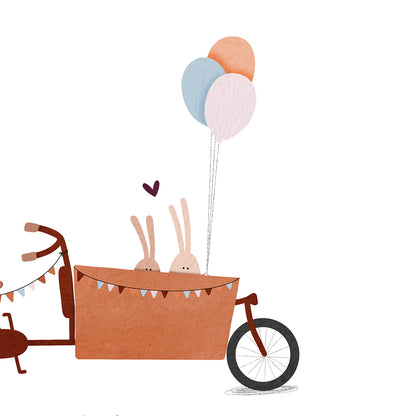 Straks niet 1 maar 2 kindjes in de bakfiets?! Ik pas dit vrolijke bakfietskaartje met liefde voor je aan!