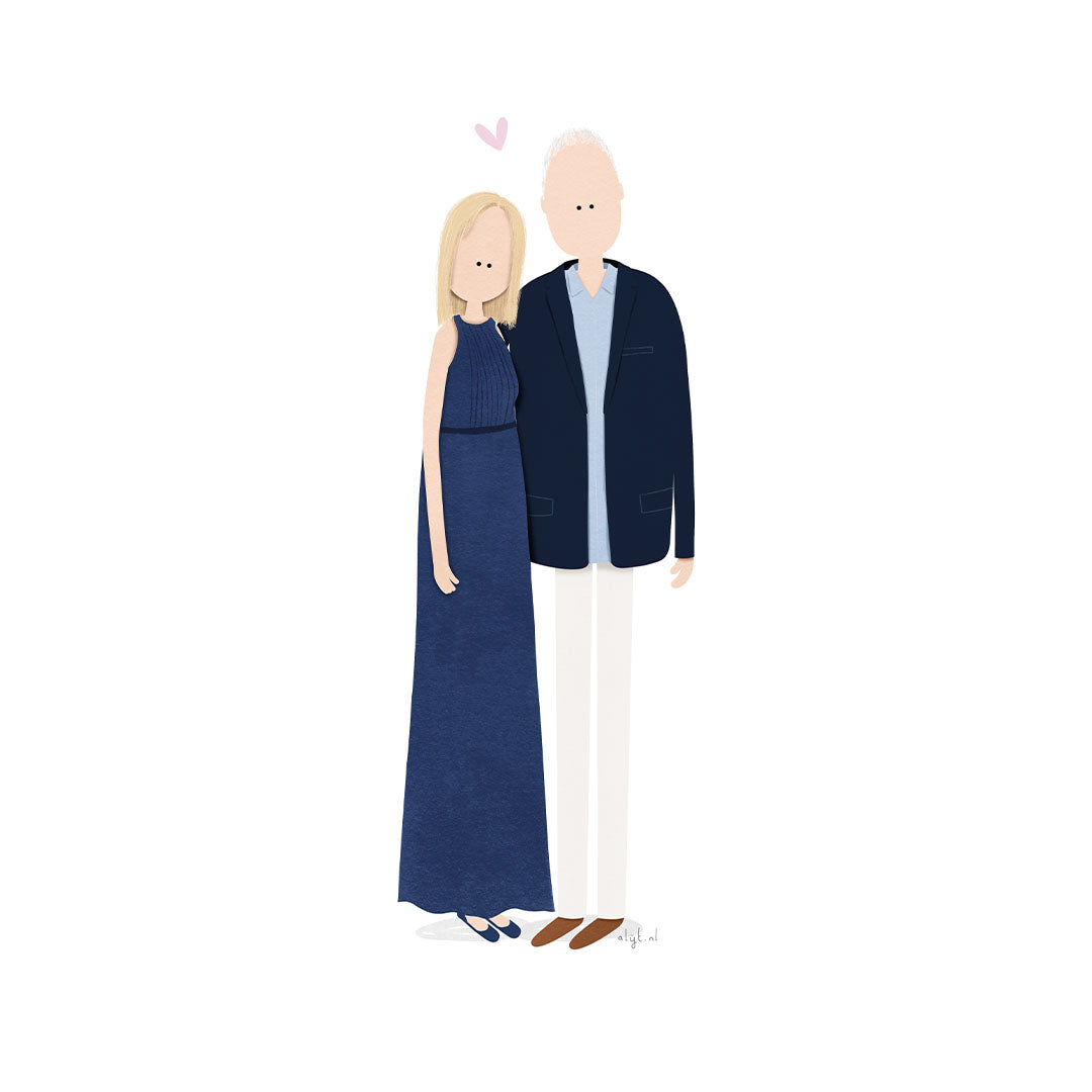 Ik help je graag en illustreer jullie in de gewenste opstelling, houding en in jullie favoriete outfits of kleuren!