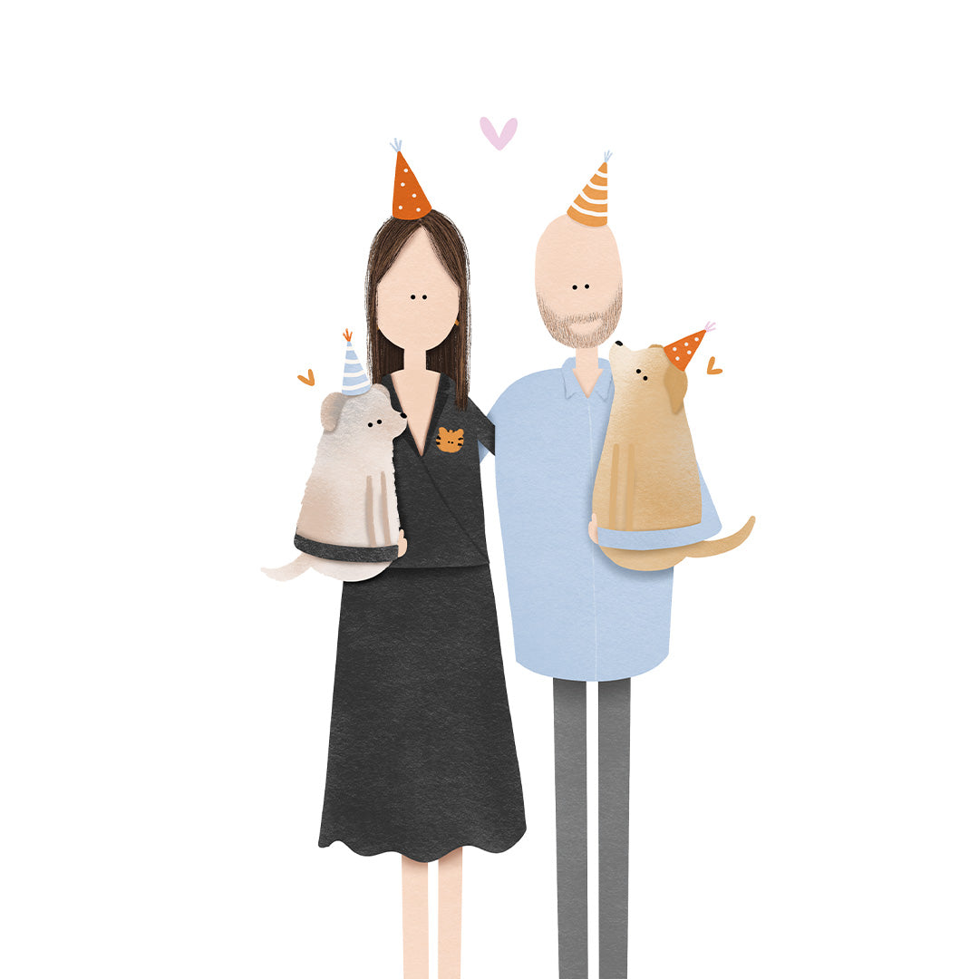 Ik help je graag en illustreer jullie in de gewenste opstelling, houding en in jullie favoriete outfits of kleuren!
