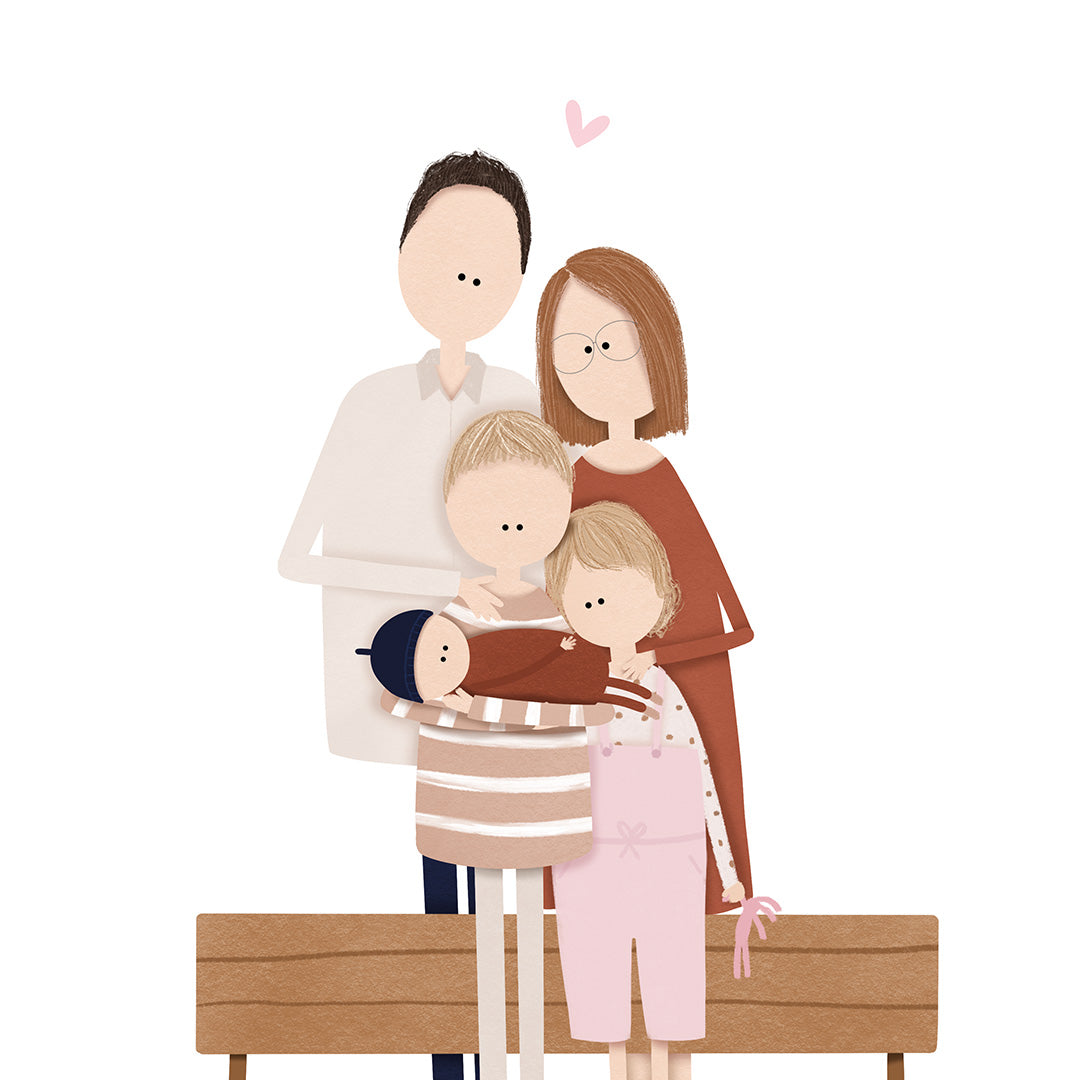Ik help je graag en illustreer jullie in de gewenste opstelling, houding en in jullie favoriete outfits of kleuren!