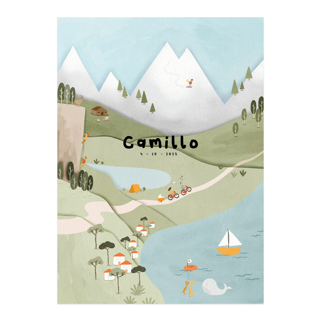 Geboortekaartje voor baby Camillo! Een combinatie van Oostenrijks- en Libanese landschappen met persoonlijke details!