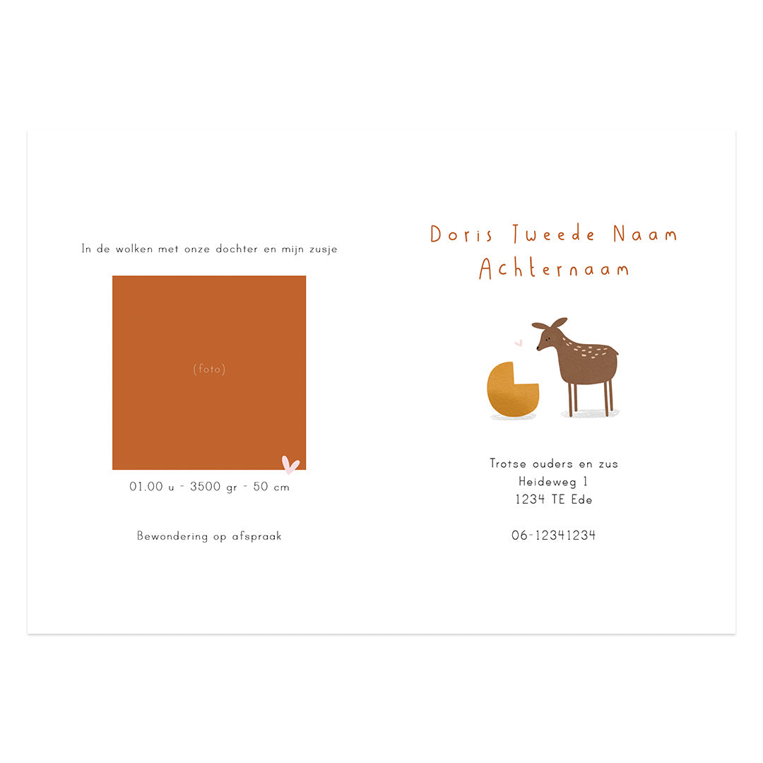 Dit kaartje heb ik gemaakt voor de geboorte van Doris. Willen jullie ook een uniek en op maat gemaakt geboortekaartje voor deze bijzondere gebeurtenis?