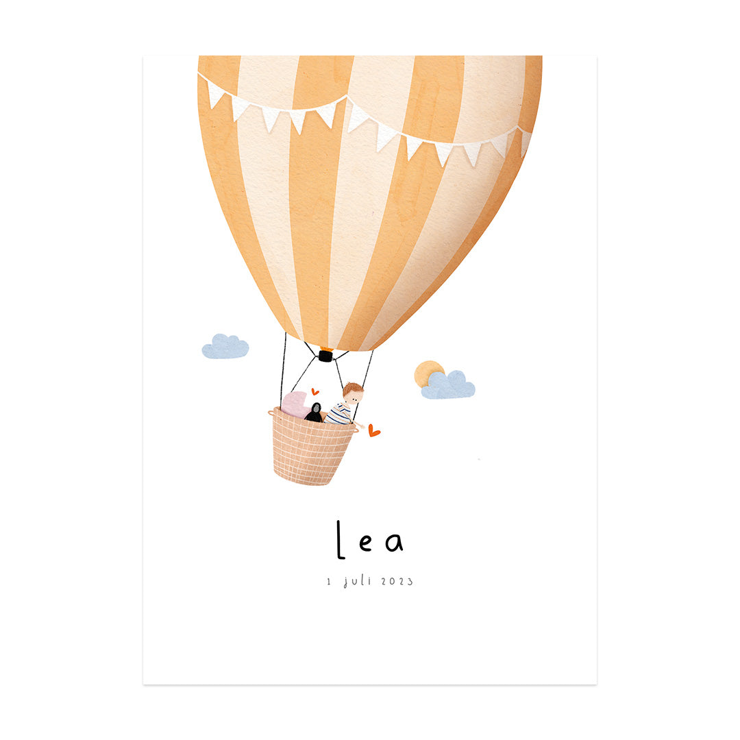 Voor Lea mocht ik een vrolijke luchtballon maken met in de mand haar grote broer met zijn favoriete knuffel en een wiegje. Ook mocht ik een bijpassend labeltje maken voor de doopsuikers.