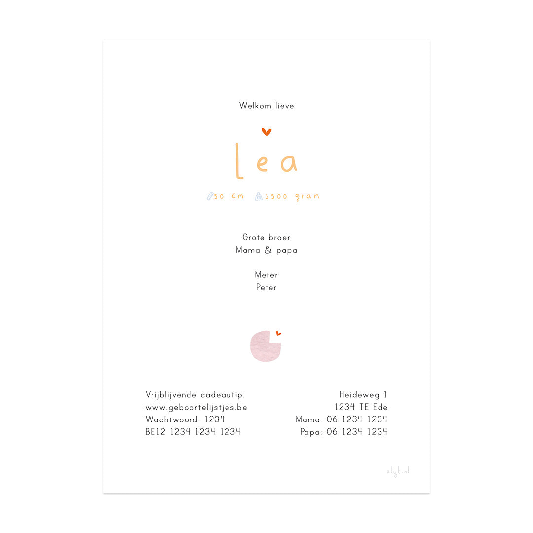 Dit kaartje heb ik gemaakt voor de geboorte van Lea. Willen jullie ook een uniek en op maat gemaakt geboortekaartje voor deze bijzondere gebeurtenis?