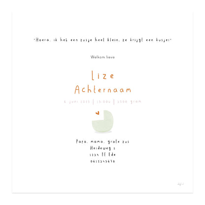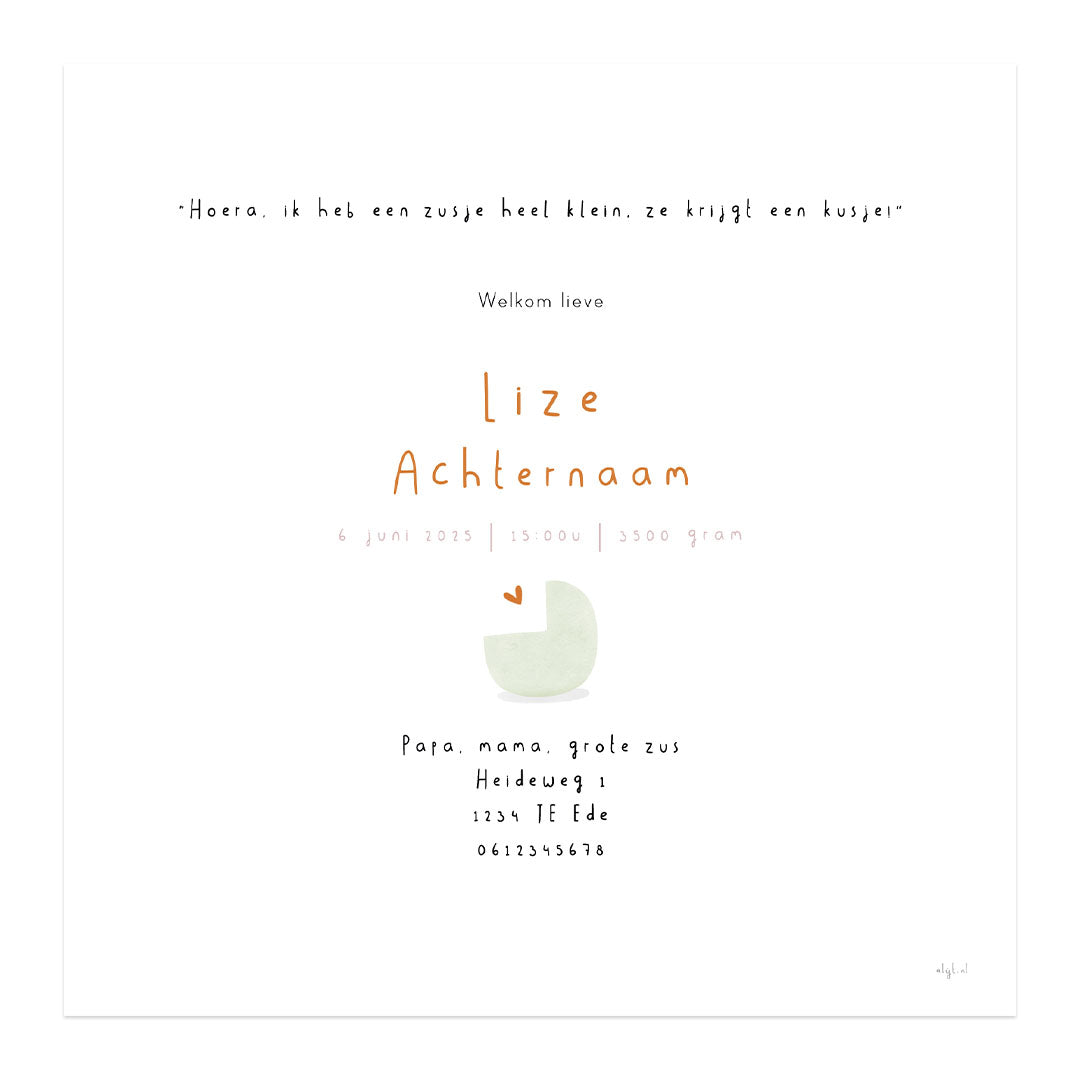 Dit kaartje heb ik gemaakt voor de geboorte van Lize. Willen jullie ook een uniek en op maat gemaakt geboortekaartje voor deze bijzondere gebeurtenis?
