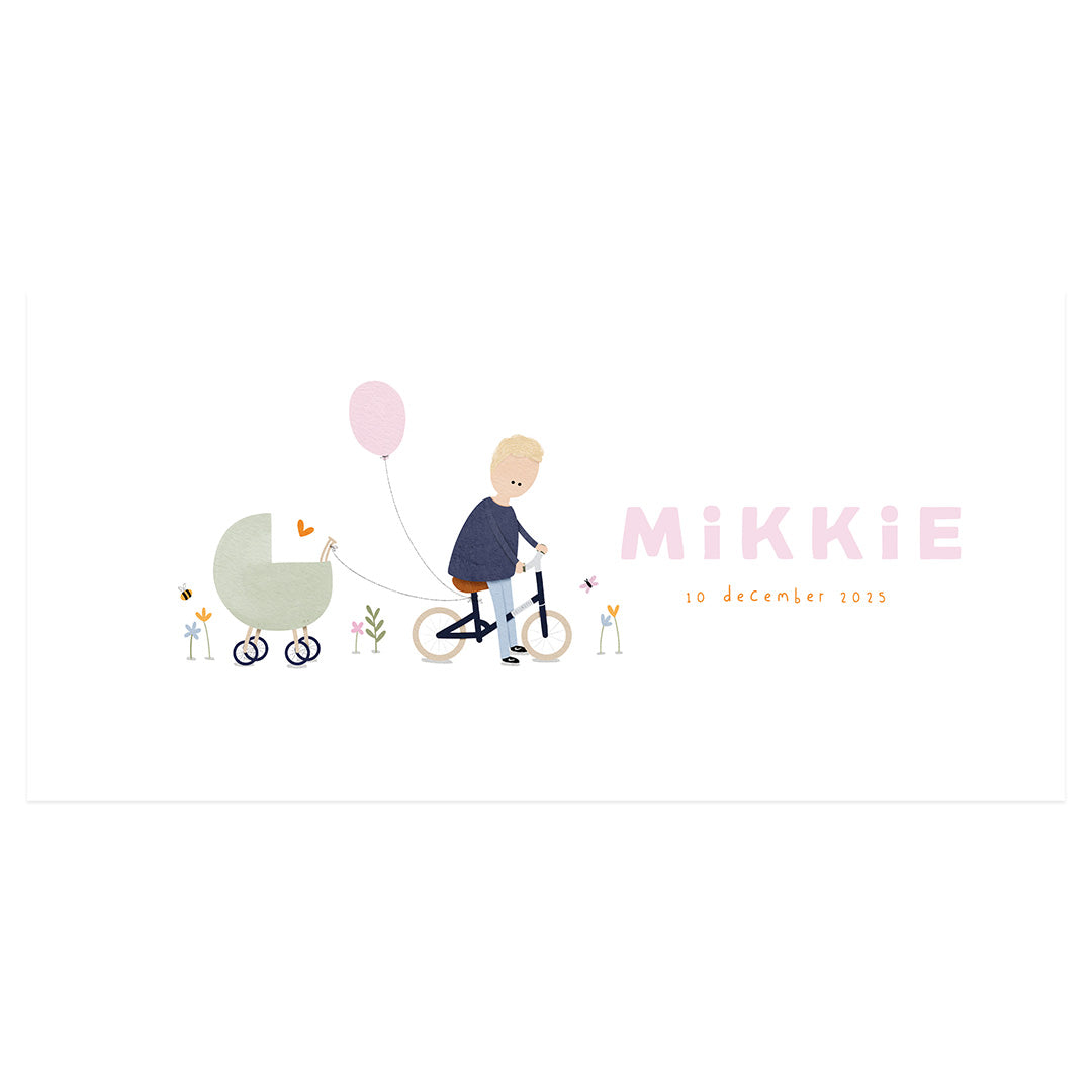 Voor baby Mikkie mocht ik haar grote broer illustreren op zijn fietsje!