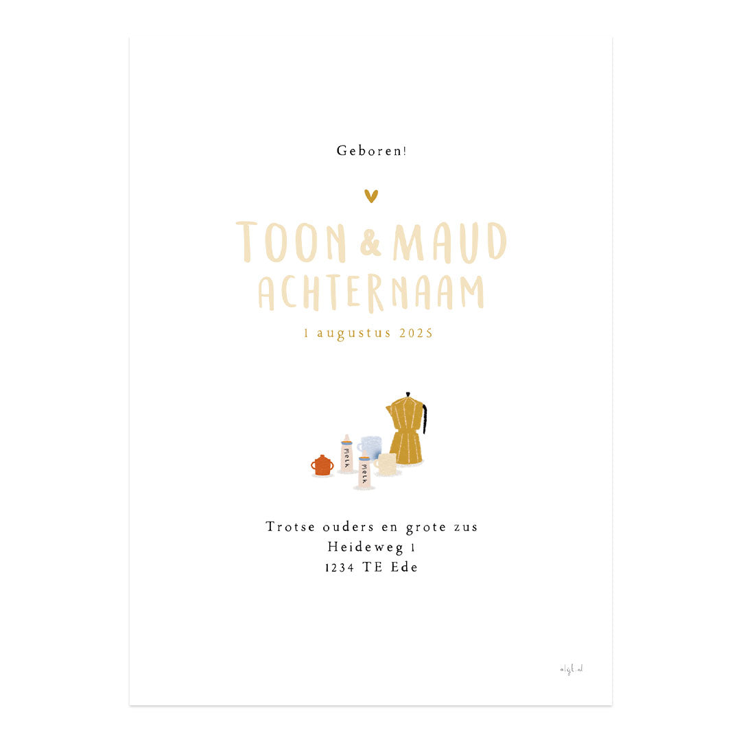 Dit kaartje heb ik gemaakt voor de geboorte van Toon & Maud. Willen jullie ook een uniek en op maat gemaakt geboortekaartje voor deze bijzondere gebeurtenis?