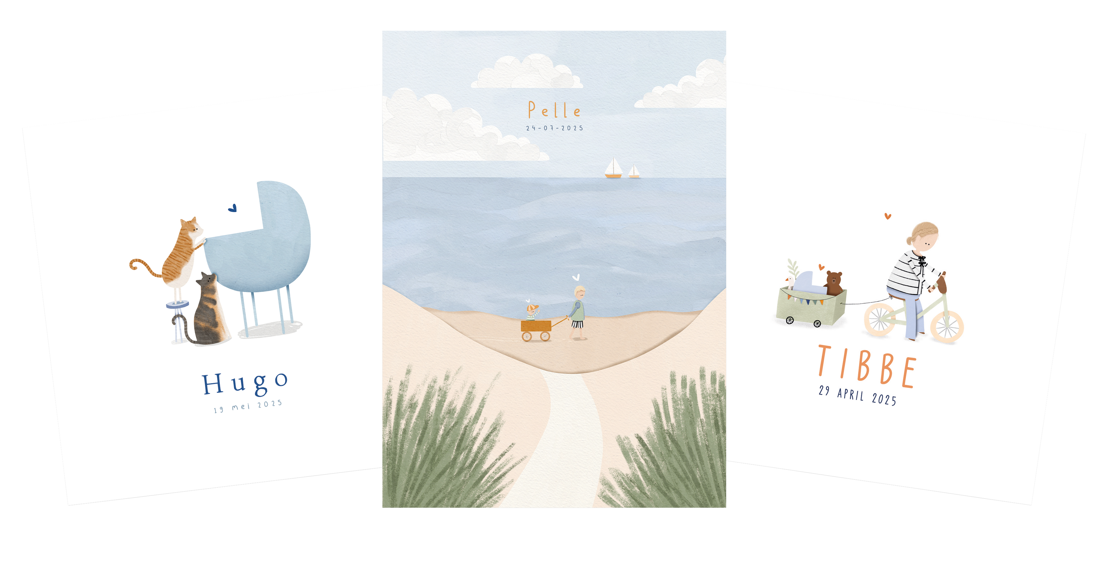 Ik help jullie graag een persoonlijk kaartje voor jullie kindje te maken. Naast de proefdruk en het drukwerk kan ik ook voor jullie de enveloppen regelen en een sluitzegel, poster, geboortebord of een kraamfeestkaartje ontwerpen. Na de geboorte hoeven jullie alleen de gegevens door te geven – de rest regel ik!
