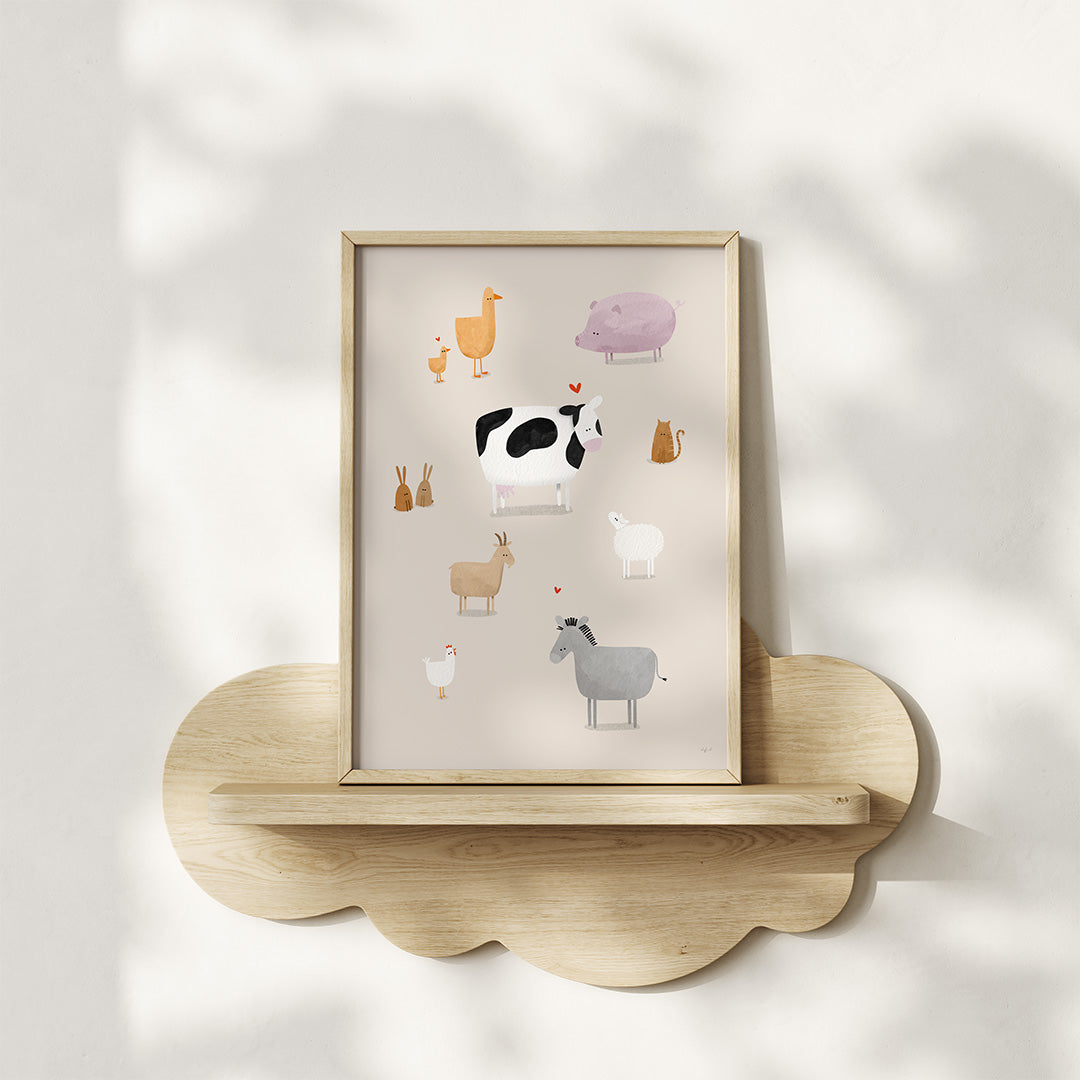 Deze collectie boerderijdieren is gedrukt op stevig, luxe papier met een zachte textuur. Je kunt de poster inlijsten maar ook prima zo aan de muur hangen met wat dubbelzijdig tape.