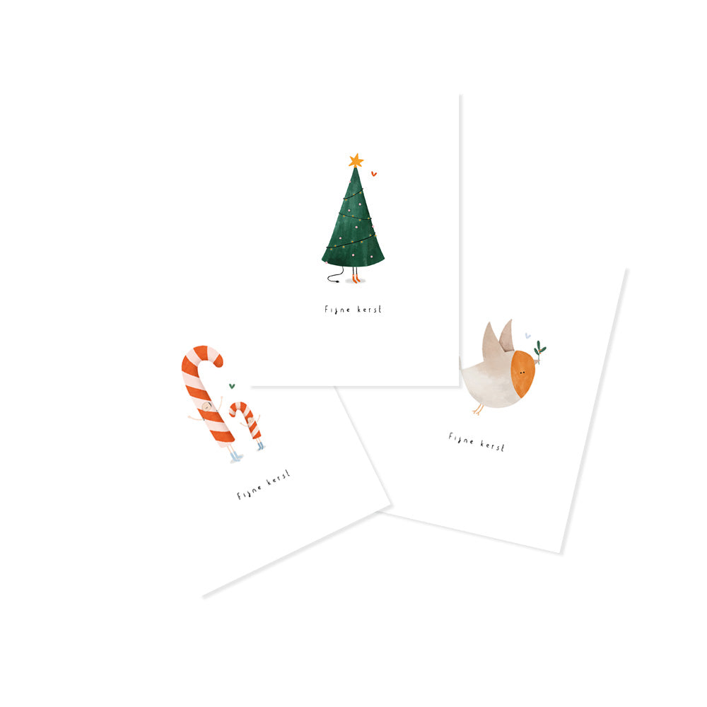 Set van 3 minimalistische en vrolijke gevouwen kerstkaarten inclusief gerecyclede envelop!
