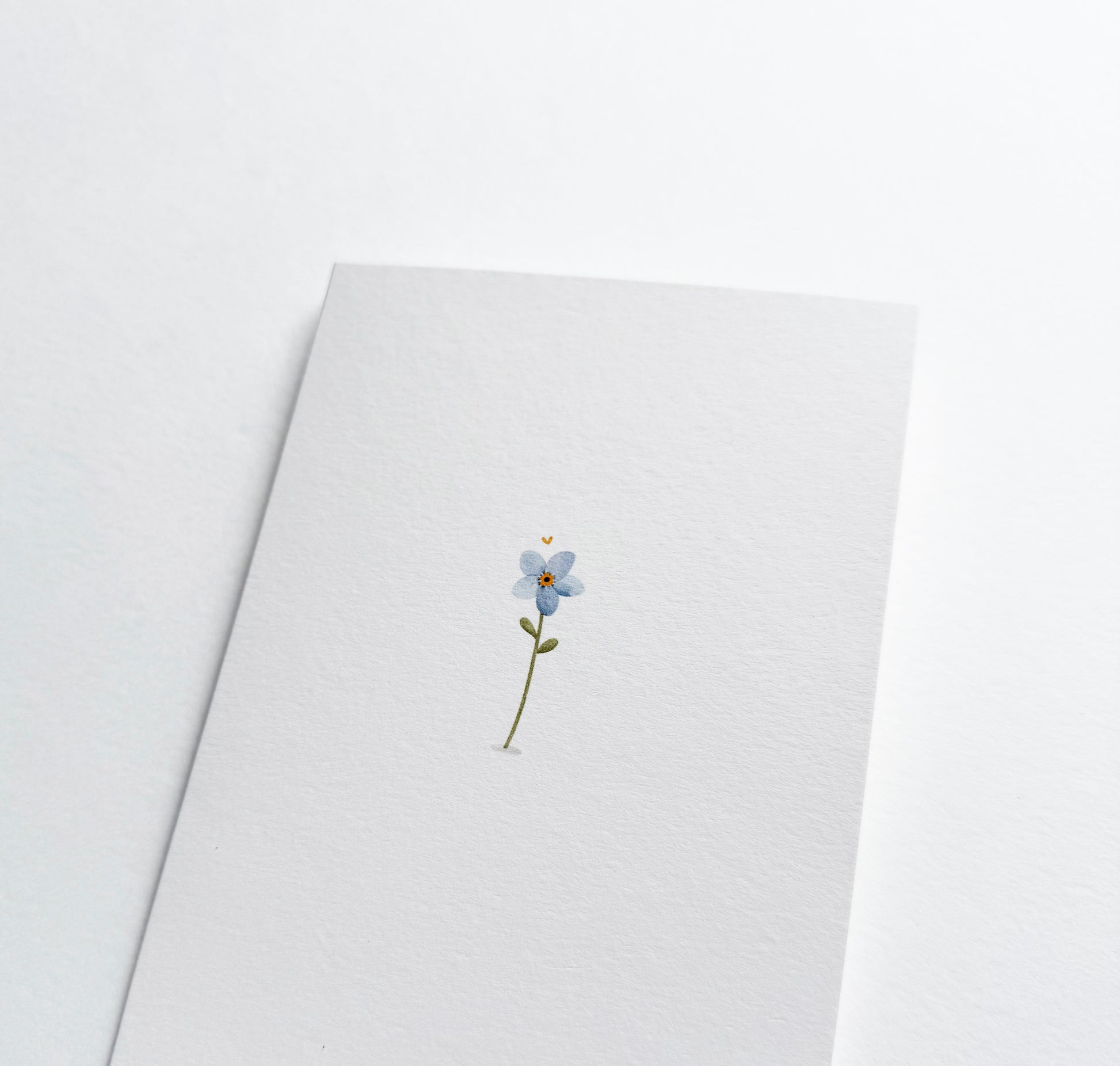 De kaart is gedrukt op prachtig off-white papier met lichte textuur, is leeg aan de binnenzijde en komt met een licht grijze envelop.